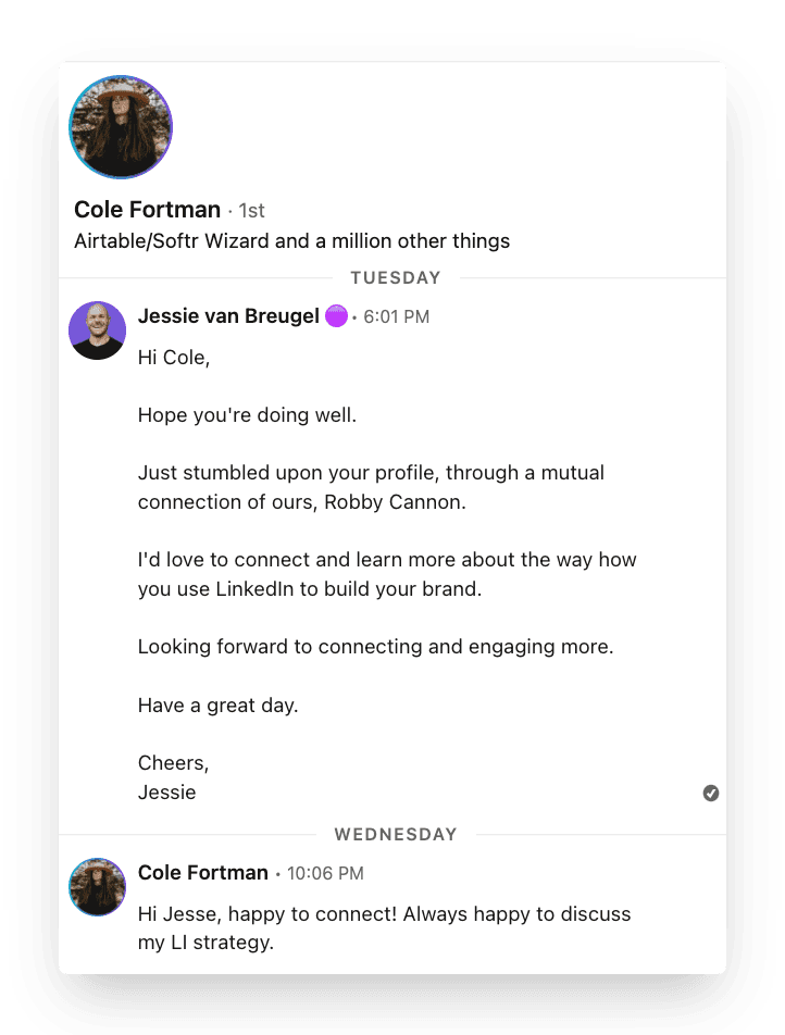 If you use the Breadcrumb technique, this scenario would be most occurring for you: you want to connect with another creator after you found their profile through a mutual connection: