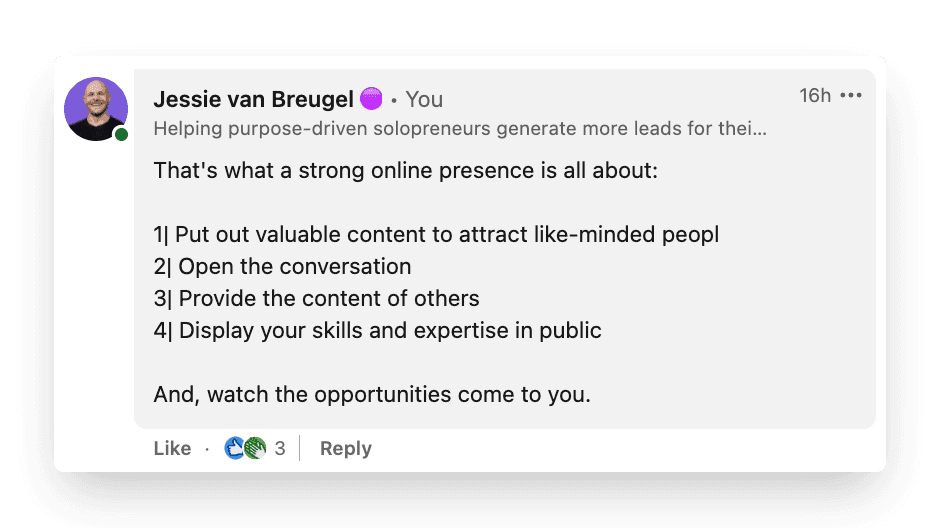 Pro tip: if possible, it’s great to “invite” other people into the conversation happening in the comments to make it even more engaging. Just make sure you steer clear of tagging people to get visibility, no one likes being dragged into a conversation that is not of interest to them.