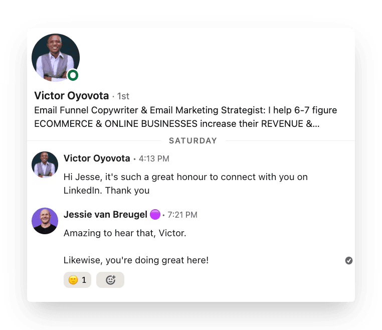 It’s always a great idea to initiate a conversation with new connections, straight after accepting their request. This way, you’re still top of mind and you prevent your audience from filling up with “empty connections.”