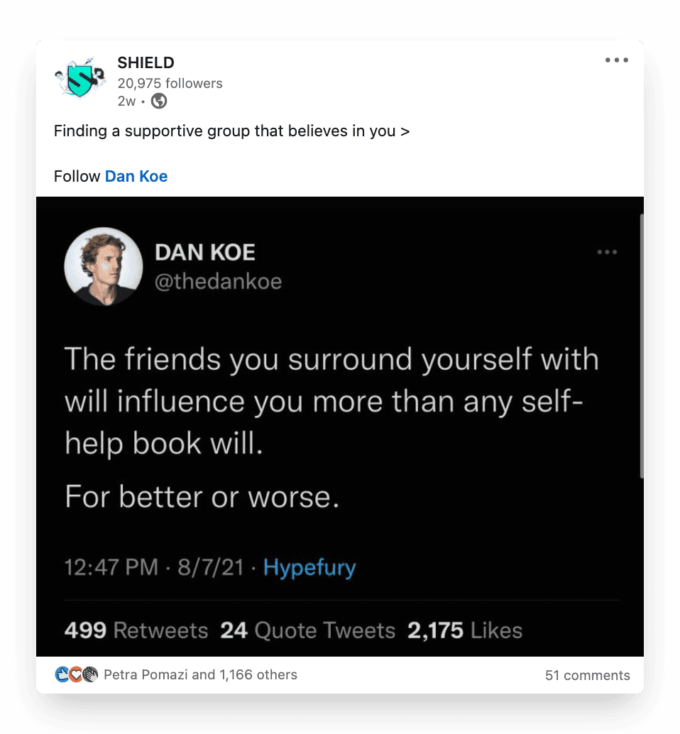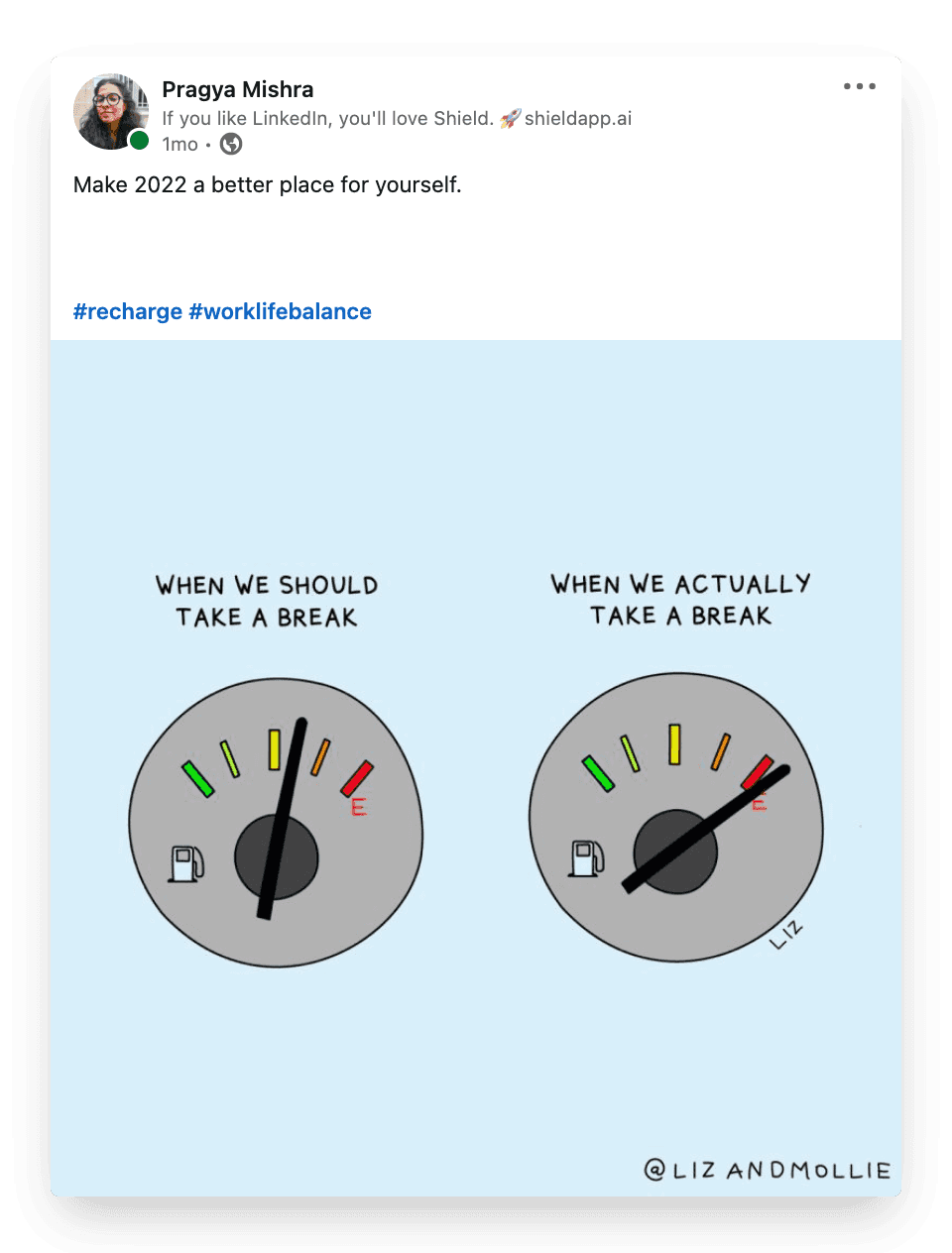 As you can see, getting noticed on LinkedIn is more than just posting daily. There are many strategies and tactics you can adopt to get your name out there in the feed. It’s a competitive market, but the key to standing out and getting noticed is by being different in your content, whether it be by format types or writing styles. But don’t let it overwhelm you. If you are currently doing none of the above, try out one tactic this week and analyse the performance, and gradually introduce each of the above strategies. the best part? You could measure the impact with Shield and see which ones are working best for you.