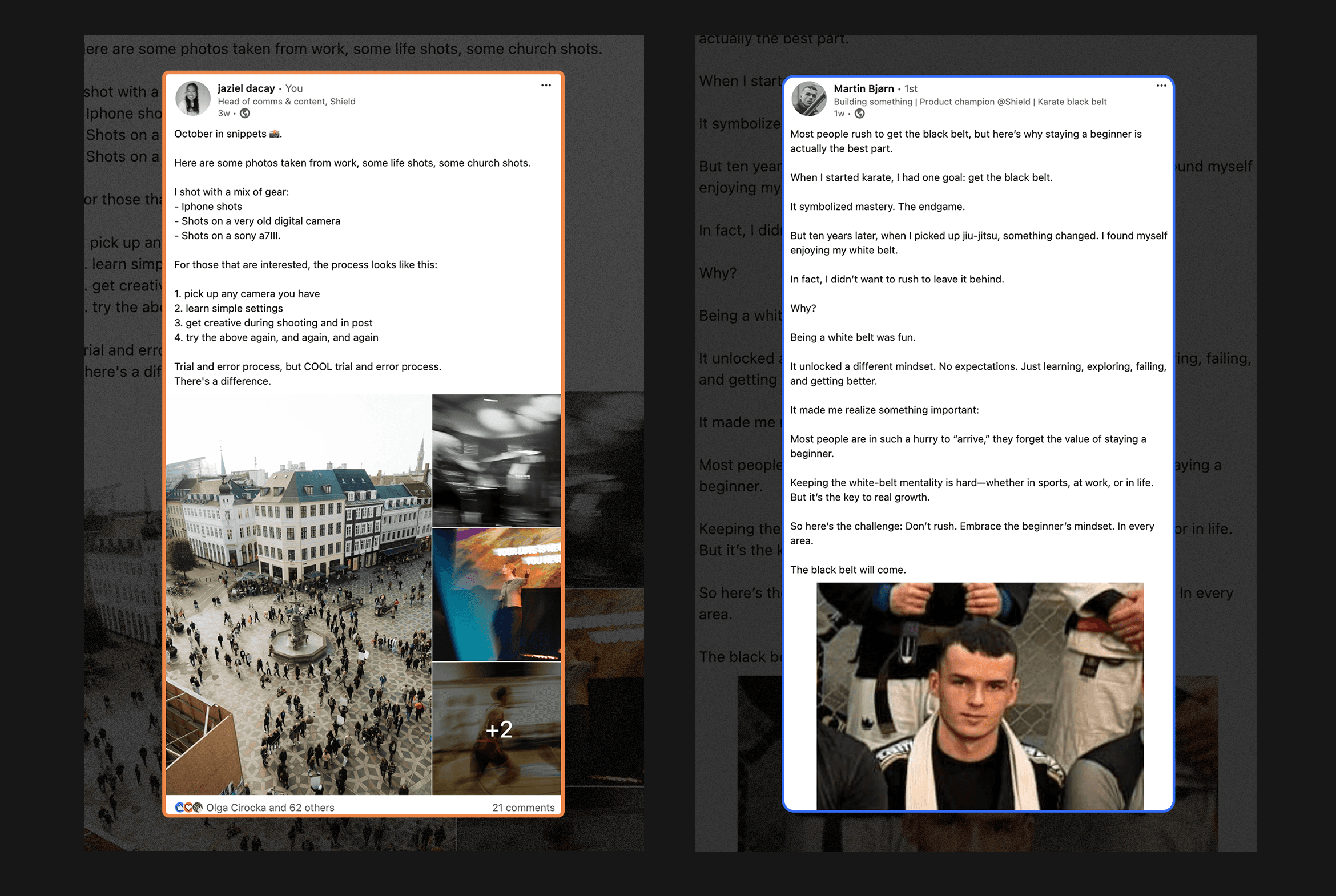 Not all employees may feel comfortable or know where to start on LinkedIn. Offering training sessions on LinkedIn best practices, brand messaging, and even personal branding can equip and empower employees to represent the company effectively. Share examples of successful posts to inspire new advocates and help them feel confident sharing. Once you get going, you can share examples from within the group of advocates using employee advocacy software like Shield.