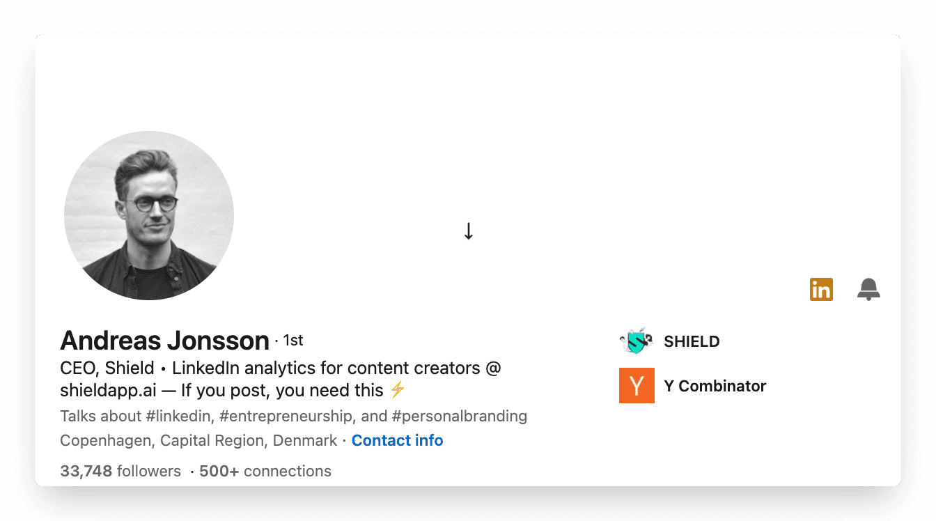 Andreas keeps his headline simple by stating “CEO” and describing the problem his company is solving. This adds curiosity for his audience to check what he's talking about.