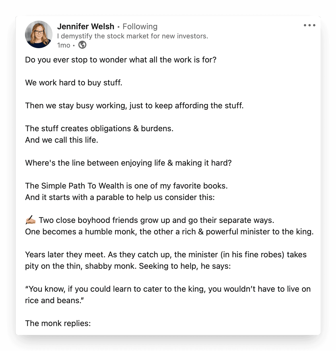 Before we get to the main body of text, we’re encouraged to take a step back and consider the post’s core messaging and how it relates to our own experiences. Fast-forward to the end of the post and you’re bound to have a few opinions on the topic.