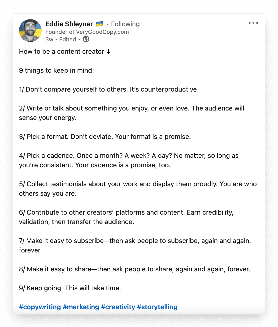 In this article you will find 10 real examples of posts with great opening lines. Think of these as frameworks and try to test them in your next post.