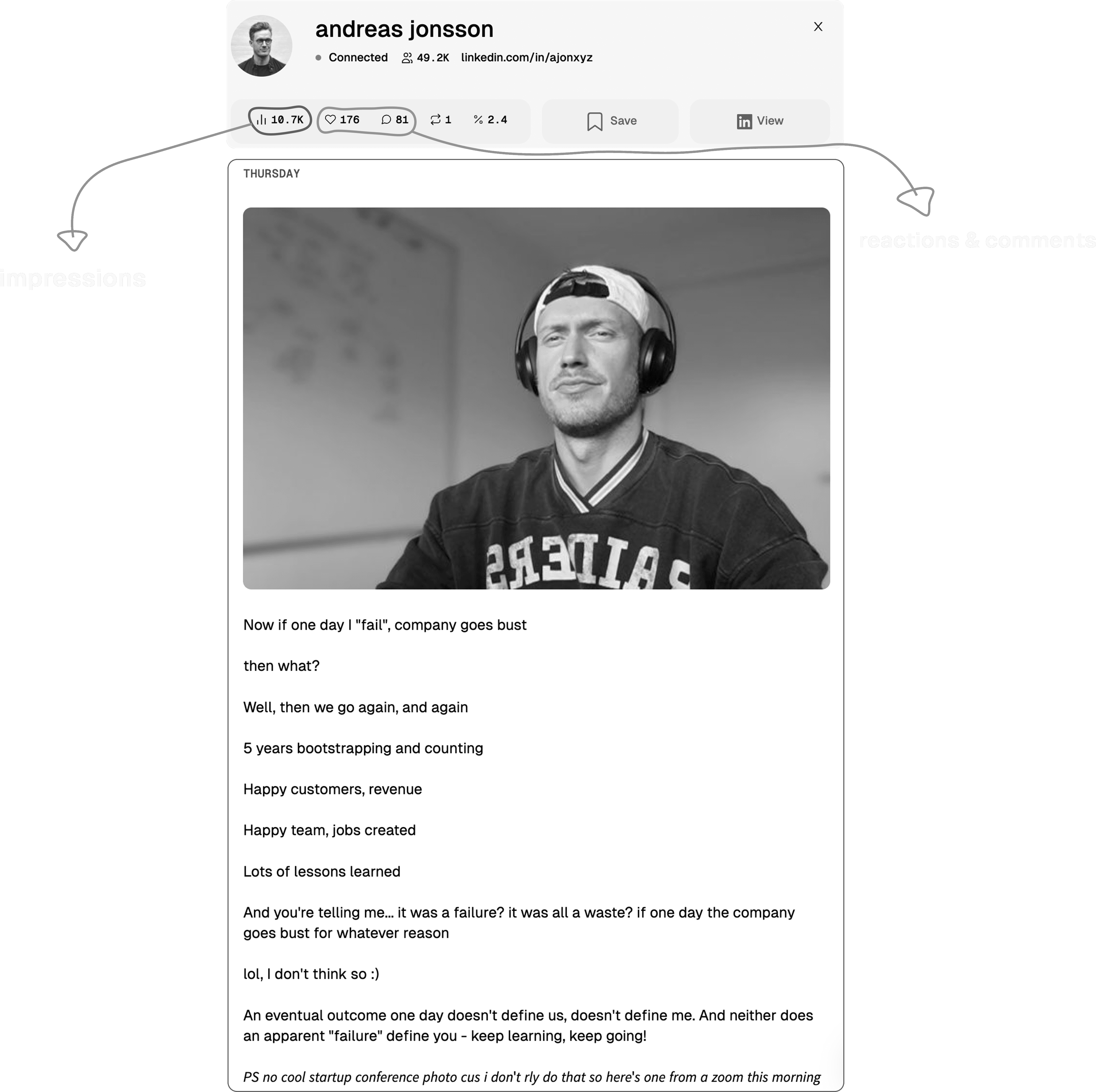 Employee advocacy is when employees voluntarily create and share content related to their company on their personal social media profiles, usually on platforms like LinkedIn. This content might include posts about company news, insights into industry trends, or even personal anecdotes about their workplace experiences. Preferably not only reposts from the company blog, but rather injecting their own personality into the content making it more authentic, humanizing the company brand in the process. At its core, employee advocacy leverages employees’ personal networks to reach new audiences in a more genuine and relatable way than typical brand marketing.
