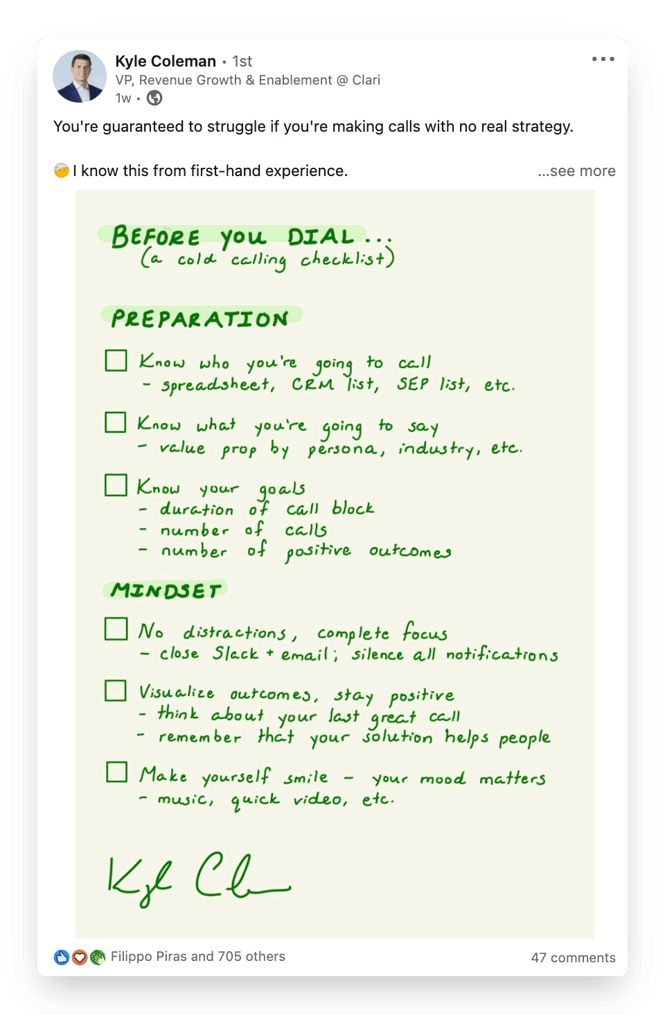 Check out this brilliant example from Kyle Coleman. Kyle's post stands out far more than your standard text post. Wouldn't you agree?