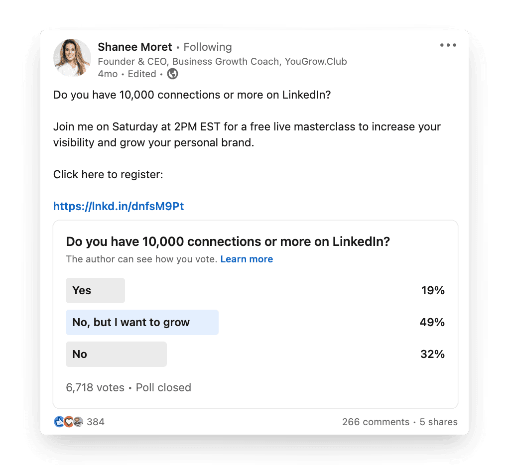 But what does this mean for a new creator on LinkedIn? No matter where you are in your LinkedIn journey, you can benefit from polls and take this approach too!